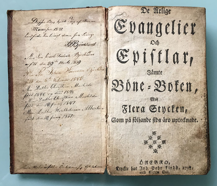 bonnebokinnside_600pxheight Publisert februar 27, 2017 kl 700 × 600 i Lars Fredrik Björklund fra Eskilstuna ← Forrige Neste → De Ærlige Evangelier og Epistlar Jämte Böne=Boken Som på följande sida åro upteknade. ÖREBRO, 1789 Del dette:Tweet Klikk for å sende en lenke med e-post til en venn(åpnes i en ny fane) E-post Lik Laster inn...