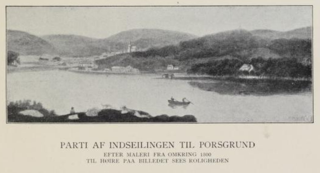 Det ble da bestemt at vi skulde flytte til Porsgrund tidlig på vaaren i 1840. Vi tok ind hos bestefar Fabricius, som levet da. Det må ha været en besværlig flytning for mor. Vi barn så jo intet til det, jeg husker kun at vi kjørte over land i to bredsleder, at vi overnattet flere gange og at vi blev pakket ned i store forposer av grønt verken og foret med saueskind. Disse blev så knyttet om halsen på os, en meget praktisk måte at få os til at sitte stille og heller ikke fryse os fordervet.